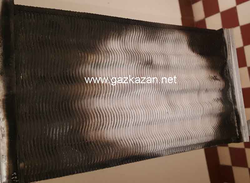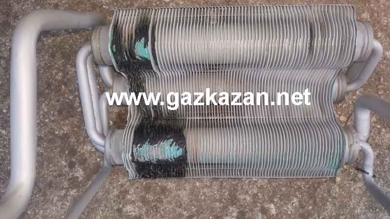 Szétégett kondenzációs gázkazán hőcserélő.